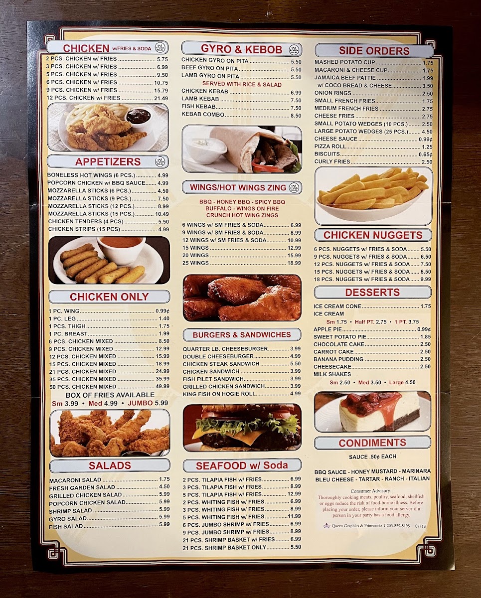 Welcome to Chicken City - Hartford, a beloved gem located at 106 Sisson Ave, known for its mouthwatering chicken dishes that keep locals coming back for more. Here, you can savor the irresistible taste of their renowned fried chicken, lauded for its juicy texture and perfect seasoning. Customers rave about the 5-piece chicken with fries—a satisfying meal that comes out hot and fresh in no time.